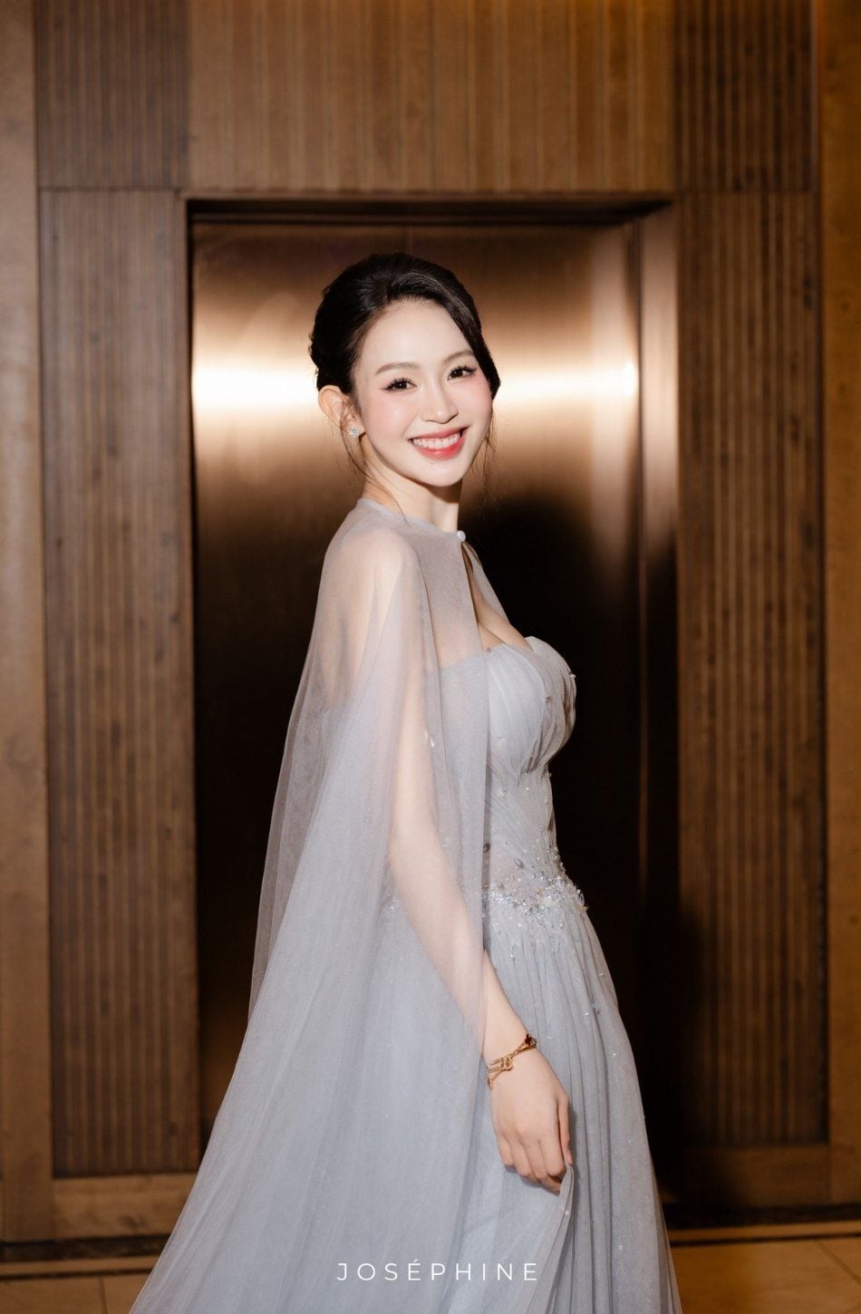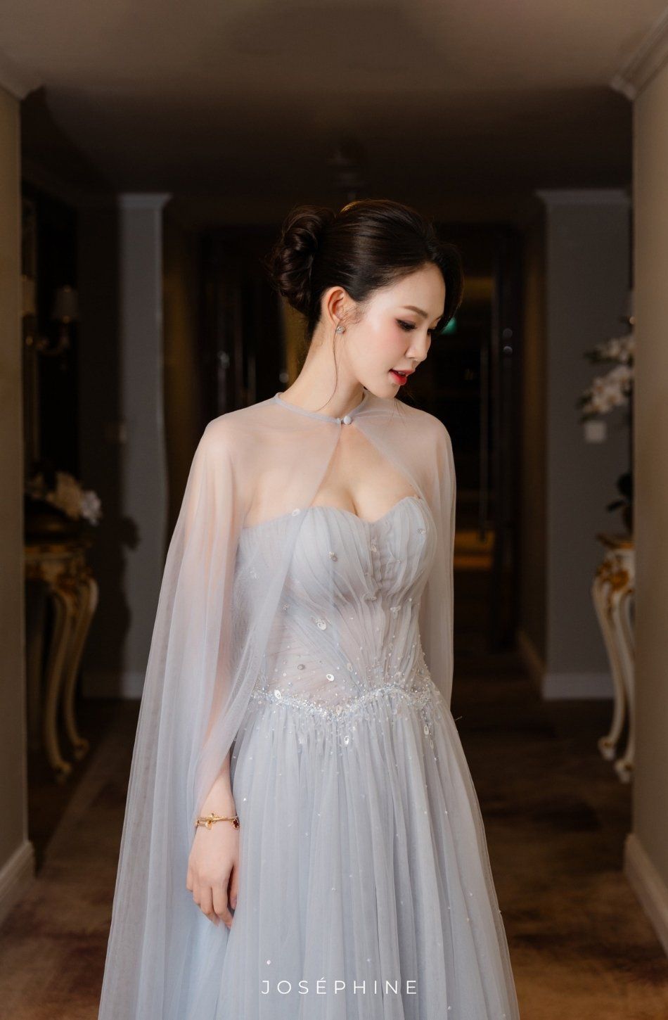 Váy xanh cúp ngực kèm choàng dài mỏng JOSEPHINE