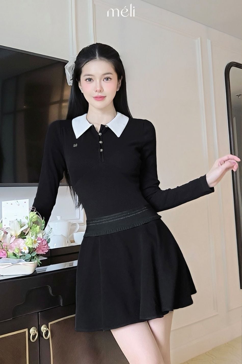 Set áo cổ trắng và chân váy ngắn xếp ly MELI