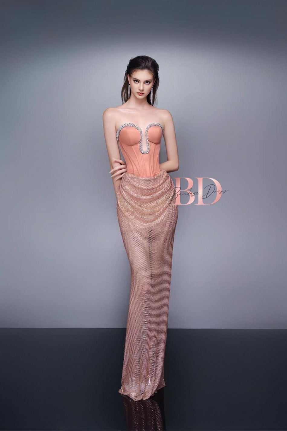 Váy cam nude dài không kèm khoác BANDAGE DRESS