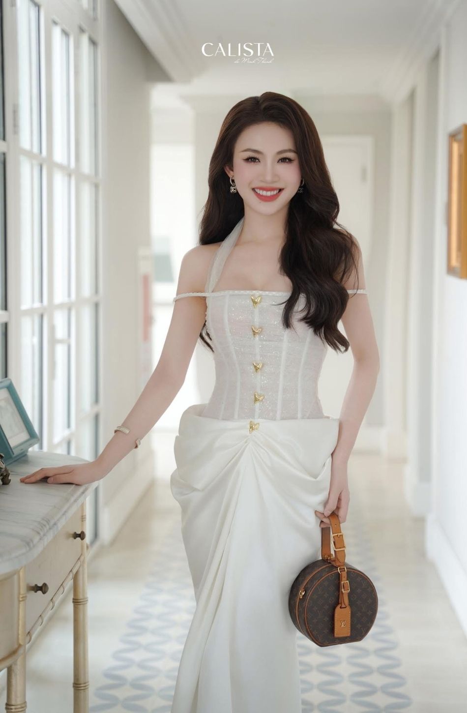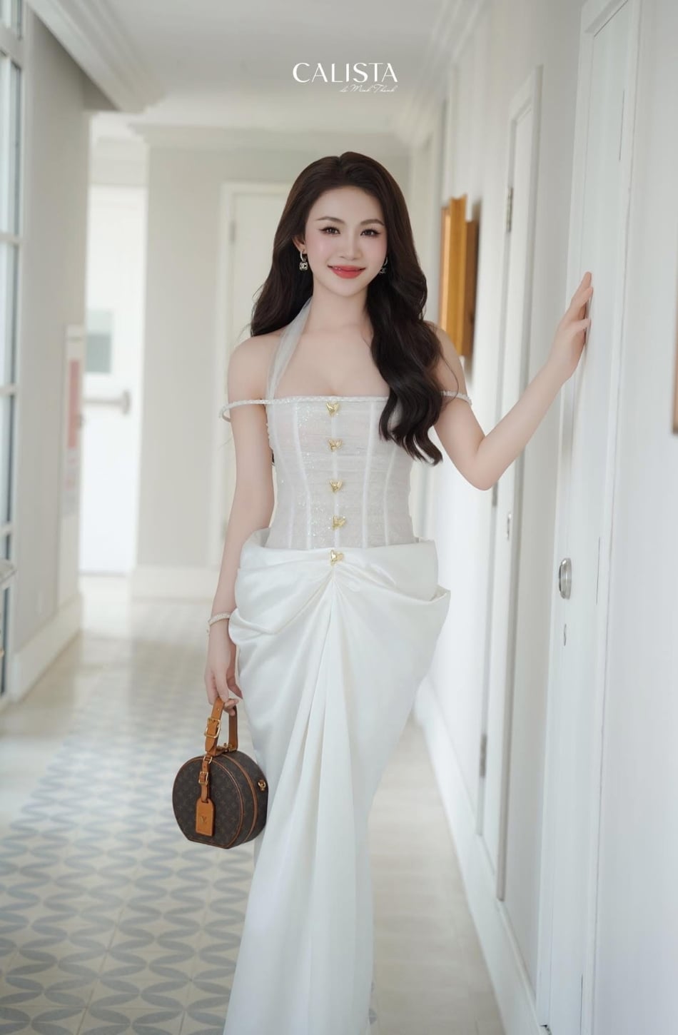 Váy trắng choàng cổ ngực phối lưới đuôi cá CASLITADEMINHTHANH