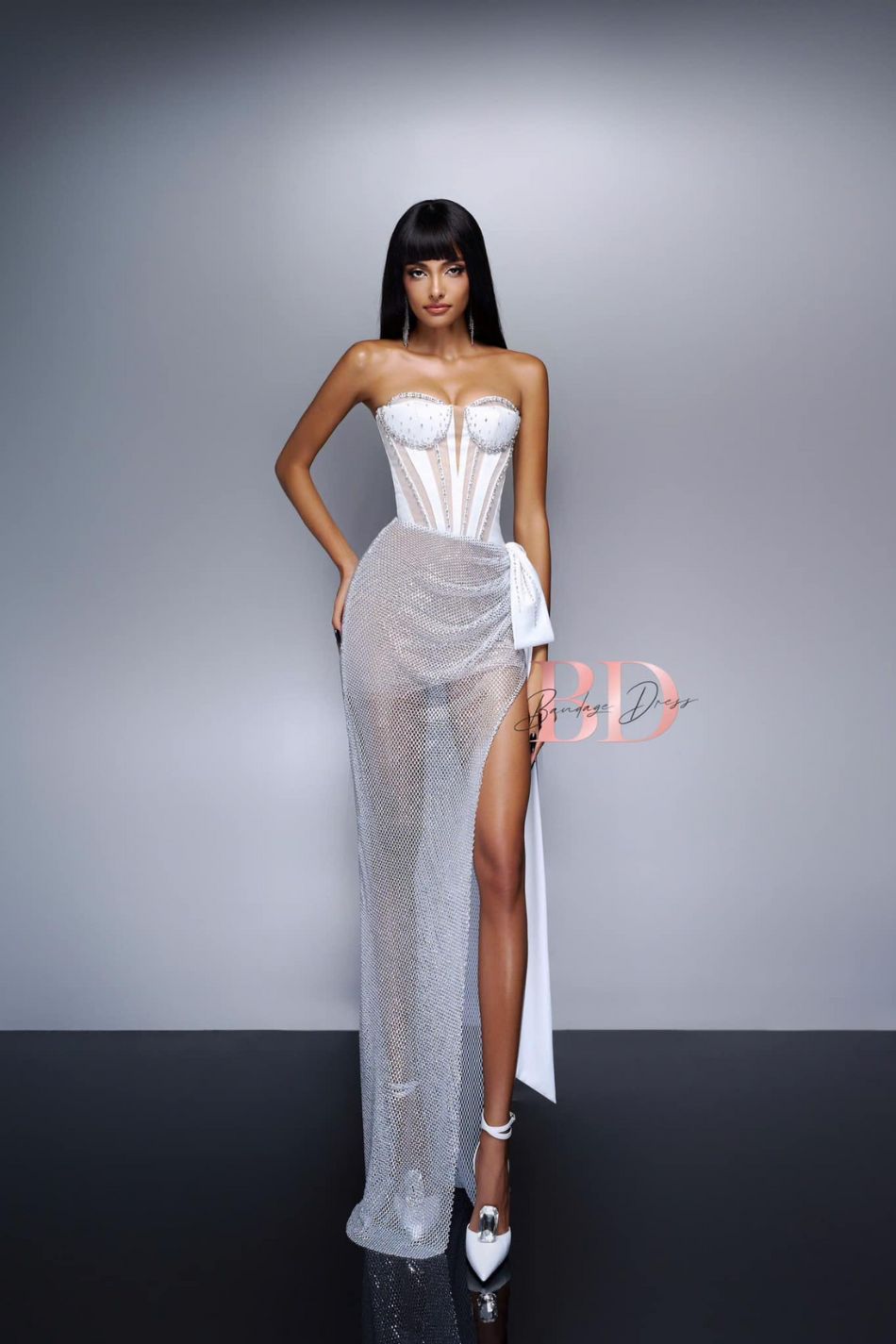 Váy trăng dài cúp ngực đính đá xẻ đùi BANDAGE DRESS